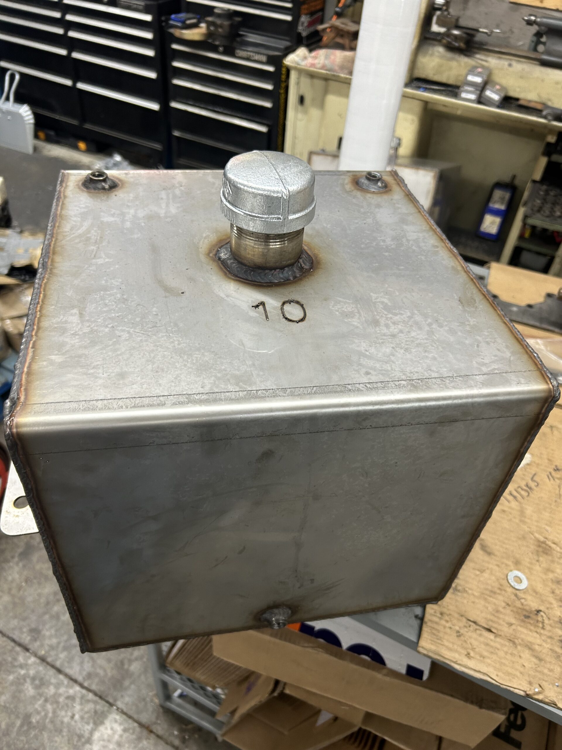 Brians Machine Shop BMS 10 Gal. Stainless tank. Stainless steel 10 gallon tank with baffles. 1/4″ bottom outlet, (2) 1/4″ Top inlets. cage mounted cell.