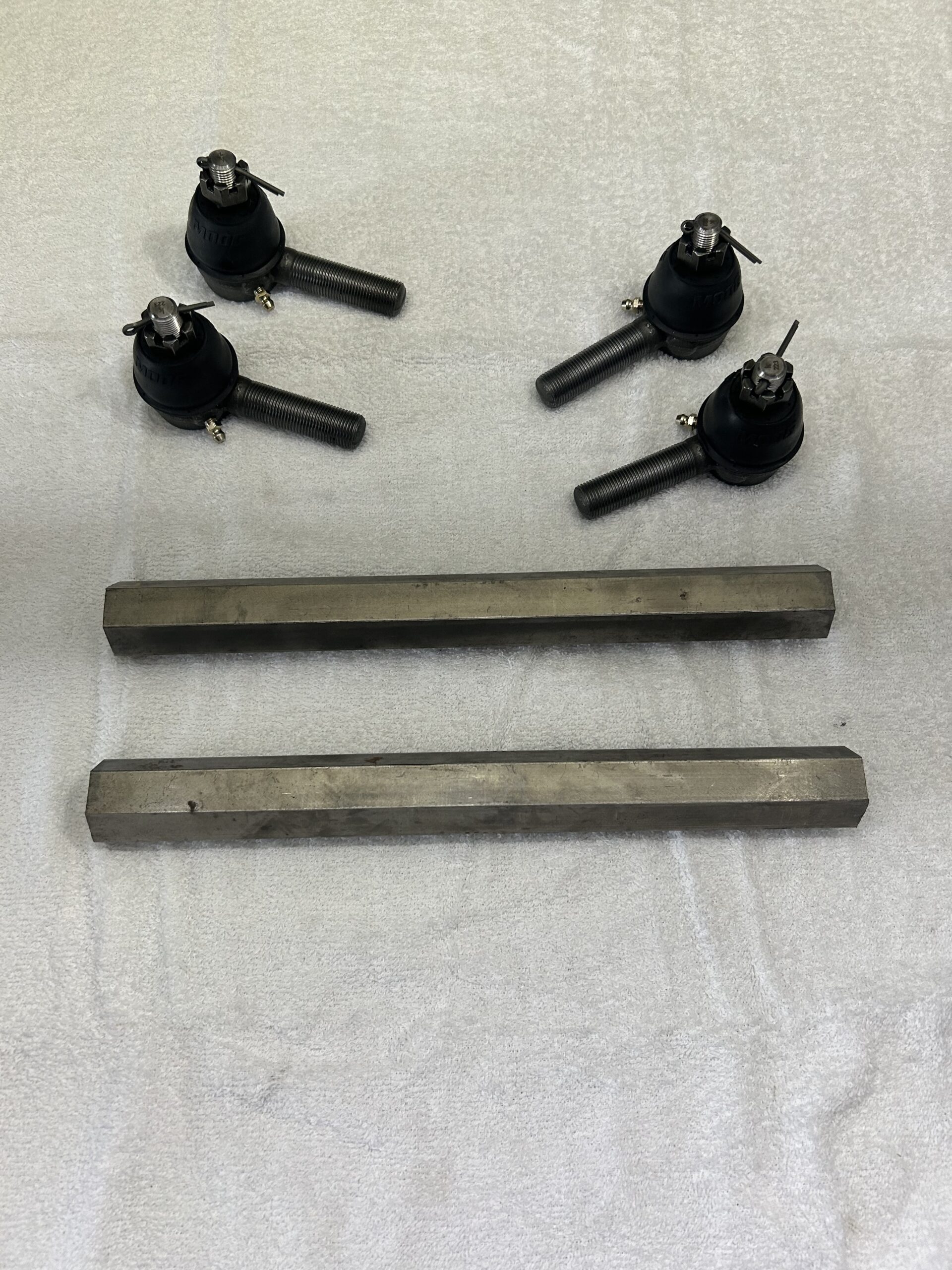 Brians Machine Shop BMS 13″ Complete Tie Rods. 1-1/4″ (1.25″) solid hex steel Tie Rods with 3/4″ Fine Thread Moog problem solver ends included. Part number for ends (ES150L & ES150R)