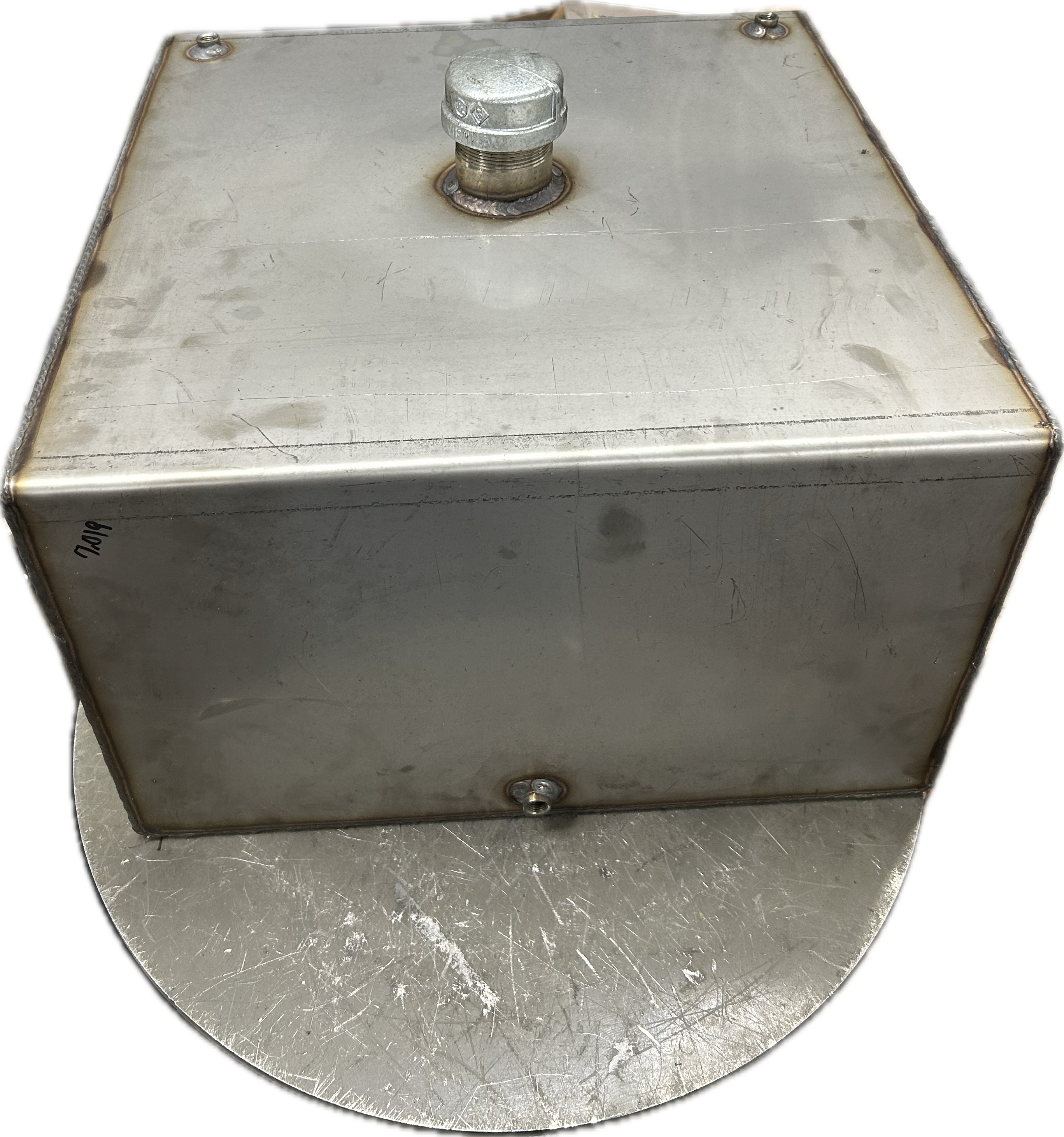 Brians Machine Shop BMS 20 Gal. Tank. 20 Gallon stainless steel cage mount-mid mount with baffle. 1 outlet in bottom 1/4 NPT 2 outlets in top 1/4NPT