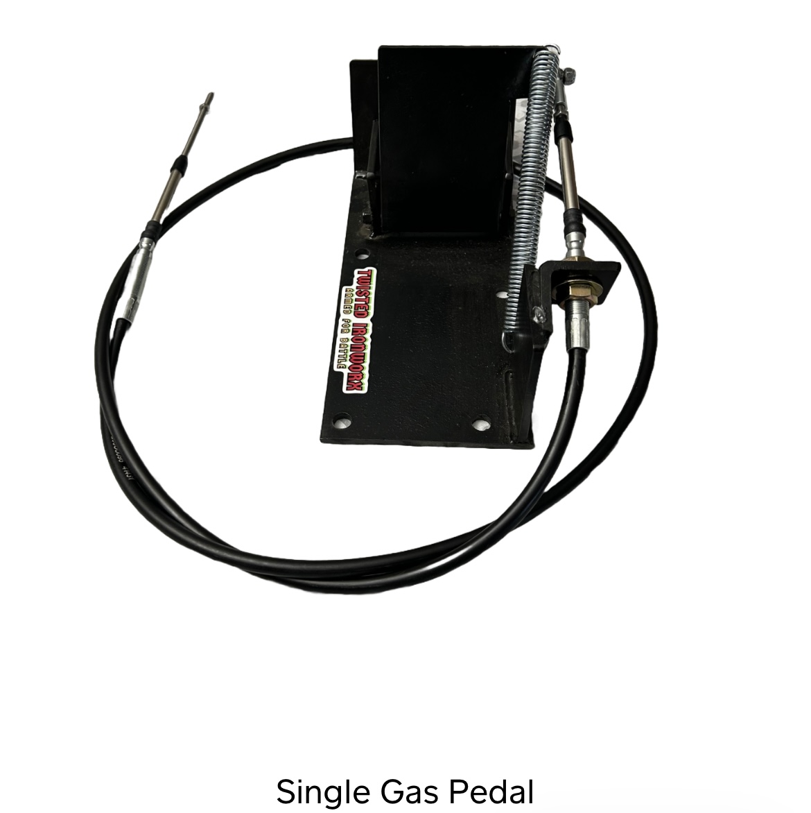 Twisted Ironworx Gas Pedal. Single Gas pedal complete with 8′ cable and rod ends. (NO CARB BRACKET)